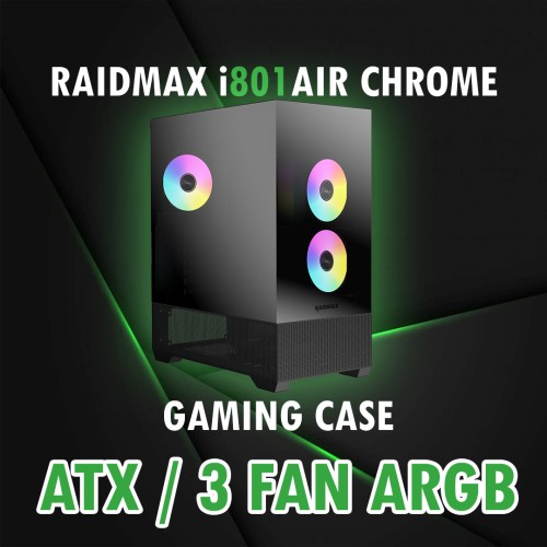 PRODUCT NAME i801 AIR Chrome PRODUCT NO. i801ACBF (Black) / i801ACWF (White) DIMENSIONS (mm) 424(L) x 215(W) x 485(H) MOTHERBOARD SUPPORT E-ATX / ATX / Micro-ATX / Mini-ITX EXPANSION SLOTS 7 MATERIALS Plastic, Steel, Tempered Glass 3.5"HDD / 2.5"SSD 2 / 2 I/O Ports Type-C x 1, USB3.0 x 2, USD2.0 x 1, HD Audio, Power, Fan LED Button FAN Support Top: 120mm x 3 / 140mm x 2 , Rear: 120mm x 1 , Side: 120mm x 2 , PSU Chamber: 120mm x 3 PREINSTALLED FAN (s) ARGB LED Fan 120mm x 2 (Side) / ARGB LED Fan 120mm x 1 (rear) RADIATOR Support Top: 360mm , Side: 240mm , Rear: 120mm MAX. GPU LENGTH 390mm MAX.CPU COOLER HEIGHT 165mm LEFT SIDE PANEL Tempered Glass RIGHT SIDE PANEL Steel PSU SUPPORT Standard PS2 / ATX PSU ( Bottom Mounted )