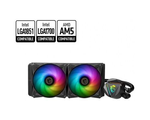 Le **MSI MAG CORELIQUID 240R V2** est un système de refroidissement liquide tout-en-un conçu pour offrir un excellent équilibre entre performance thermique, silence et design. Il est équipé de deux ventilateurs de 120 mm, d’un radiateur de 240 mm, et d’un bloc pompe intégré au radiateur pour minimiser les vibrations. Son éclairage **ARGB personnalisable** permet de l’intégrer parfaitement dans une configuration gaming RGB.