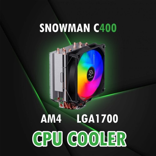 The SNOWMAN C400 is a budget-friendly CPU air cooler designed for effective thermal management in desktop systems. It features a tower-style heatsink with four 6mm direct-contact copper heat pipes and a 120mm ARGB PWM fan, aiming to balance cooling performance, aesthetics, and affordability