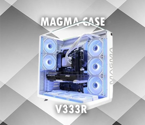 Le MAGMA V333R est un boîtier ATX gaming blanc équipé de 8 ventilateurs pour un excellent flux d’air, des filtres anti-poussière, un panneau en verre trempé, et une connectivité moderne en façade. Il supporte les formats ATX/Micro-ATX/Mini-ITX, propose de la place pour de grands GPU et des solutions de refroidissement liquide (radiateurs jusqu’à 360 mm), tout en facilitant la gestion des câbles et l’installation des composants.