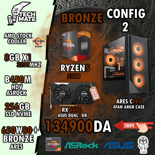 CPU: Ryzen 5 5500 COOLING: AMD STOCK MOTHERBOARD: B450m asrock hdv RAM: 8GB X1 3200mhz GPU: RX 6600 poweor color 8gb (USED) ROM: SSD 256gb PSU: ARES 650W CASE: ARES C202 4 FAN ARGB